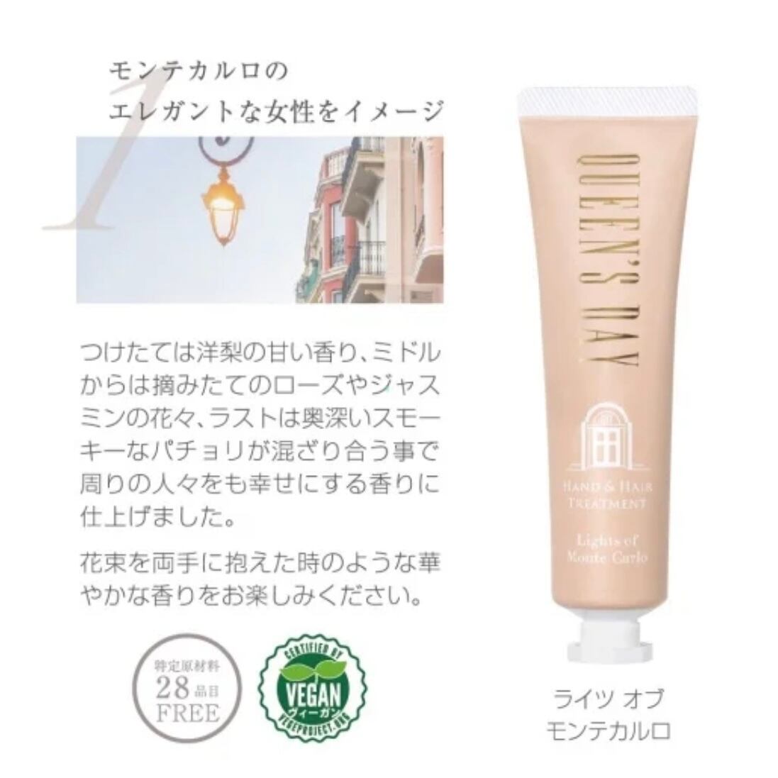 洋梨、3大フローラル(ローズ・スズラン・ジャスミン)が奏でるモナコ/モンテカルロをイメージした魅力的な香りをどうぞご堪能ください。
