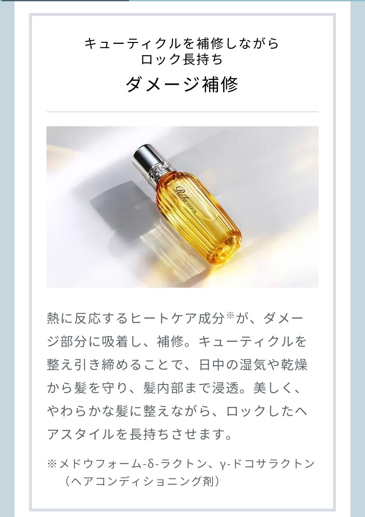 理想のスタイルをロックするだけでなく、ダメージ補修に磨きをかけ、新しいReFa LOCK OILに仕上げました。